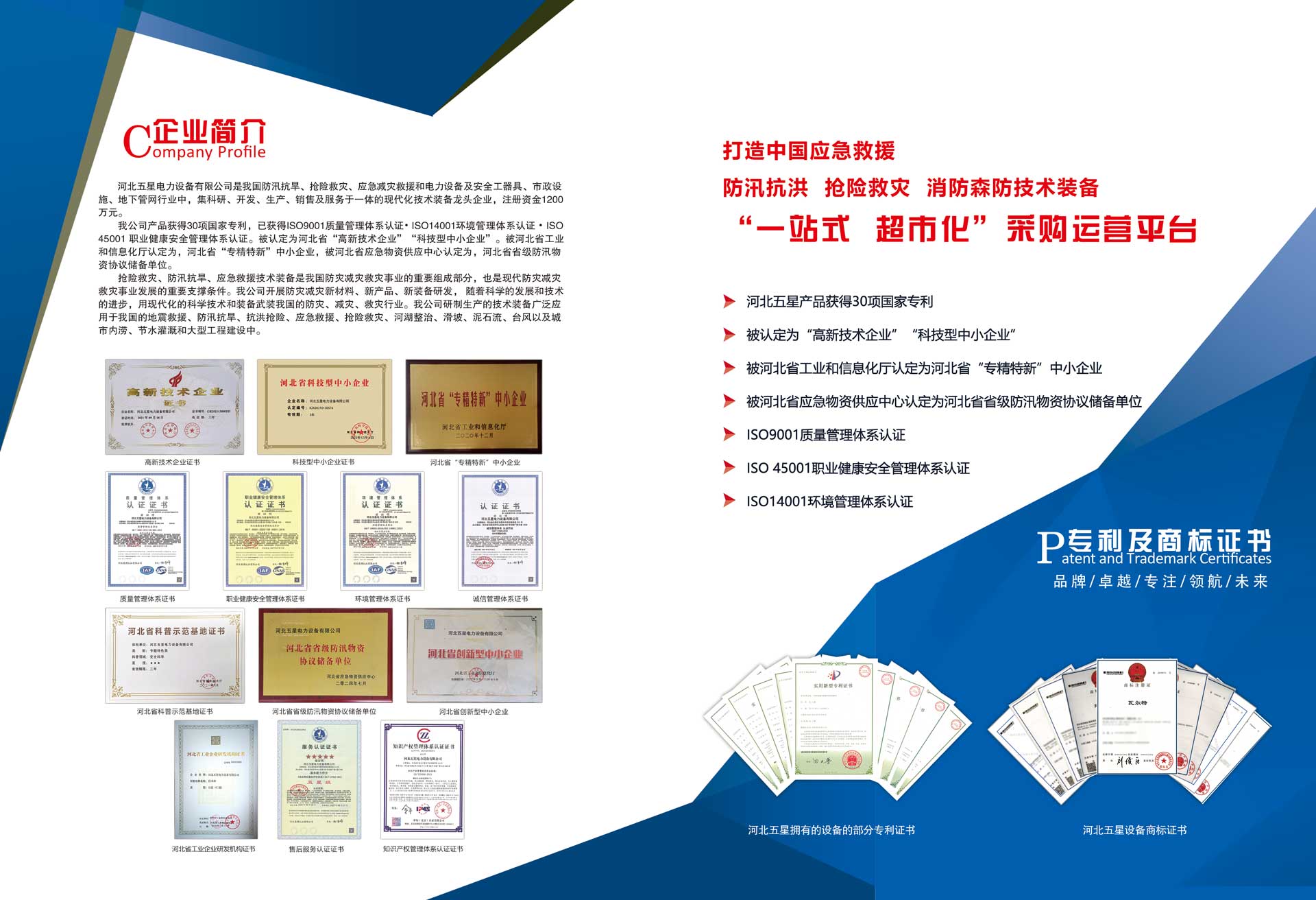 河北五星電力設備有限公司是我國防汛抗旱、搶險救災、應急減災救援和電力設備及安全工器具、市政設施、地下管網行業中,集科研、開發、生產、銷售及服務于一體的現代化技術裝備高新技術企業,注冊資金1200萬元。