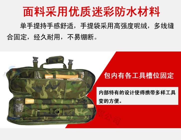 防汛搶險(xiǎn)組合式工具包特點(diǎn):靈活性好,質(zhì)量可靠,可在惡劣的環(huán)境下單兵背負(fù)作業(yè),攜帶方便,體積小、相互結(jié)合該組合工具配備齊全適用于救援隊(duì)員適用。可根據(jù)需求定制產(chǎn)品配件及功能性。