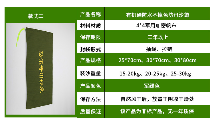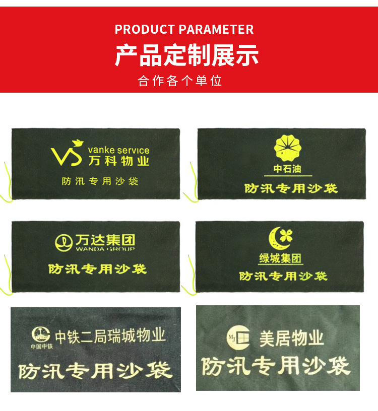 一般防汛沙袋的規格有四種,分別是40*50、30*80、25*70和40*60這四種。